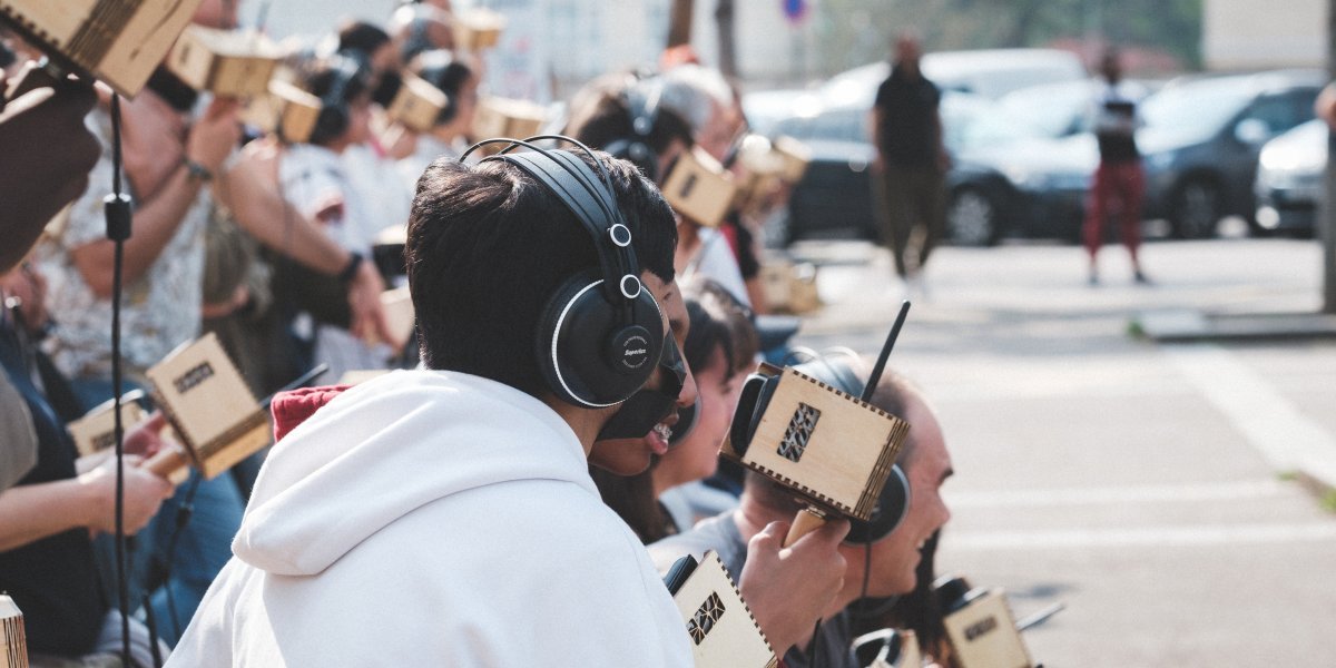 L’Aquarium électronique est un dispositif d’écoute plus qu’une installation sonore, conçu pour des interventions dans l’espace public, en extérieur et en intérieur, véritable clé d’écoute du répertoire contemporain.